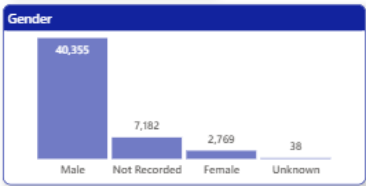 As in the previous Stop and Search statistics, older children and males make up the largest parts of this group. Black boys are again over represented here, compared to the proportion of the overall population that identify as Black.