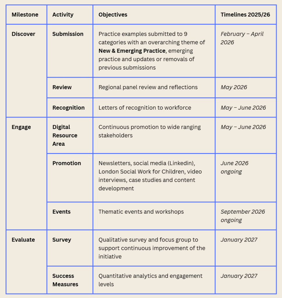- Share best practice across the London children’s services community: promoting and disseminating your work to help improve services and outcomes for children and families, with additional promotional press opportunities