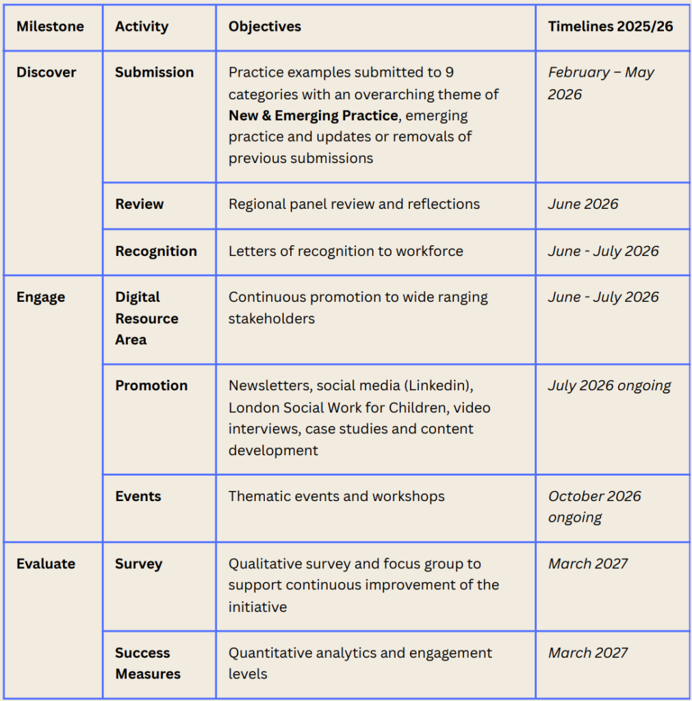 - Share best practice across the London children’s services community: promoting and disseminating your work to help improve services and outcomes for children and families, with additional promotional press opportunities