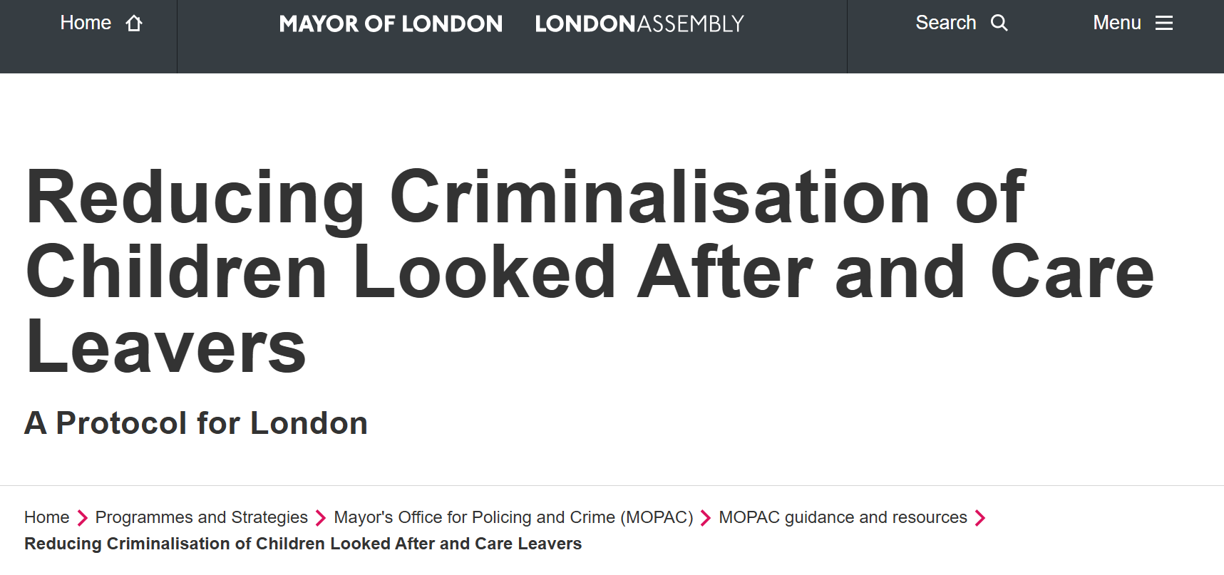Pan-London Protocol for Reducing Criminalisation of Children Looked After and Care Leavers